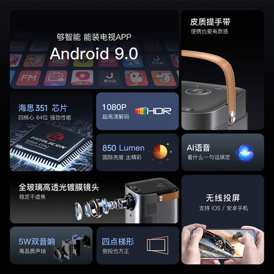 采用高亮环保LED作为投影光源,亮度更高画面更通透,打造全天候清晰观影体验。对称式扬声器,附带低音振摸大音腔,每一声都心存澎湃。