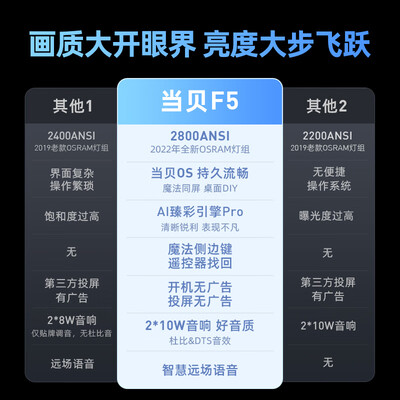 画质高清,亮度清晰,更好的还原色彩。大音腔,环绕在耳边,仿佛置身电影院,还可作为智能音箱使用。不管怎么摆放,都可自动校正。