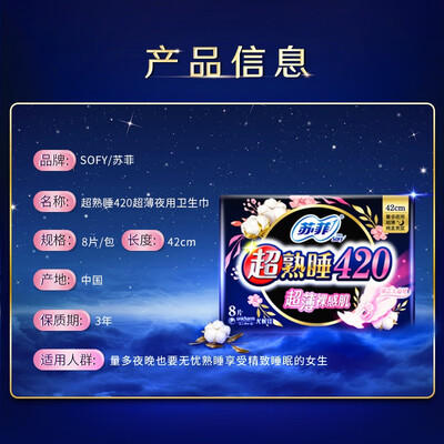 使用超熟睡锁芯技术科技,量多也能瞬间吸收。超长超大扇尾设计,肆意翻身也不用害怕,安睡一整晚。超薄巾身,给你裸感肌般的体验。