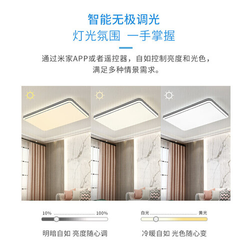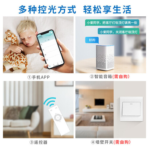 便捷的APP远程操控设计,可以自定义照明状态,使用灵敏更加便捷。高透光亚克力材质打造的灯罩,光色明亮均匀,经久耐用。
