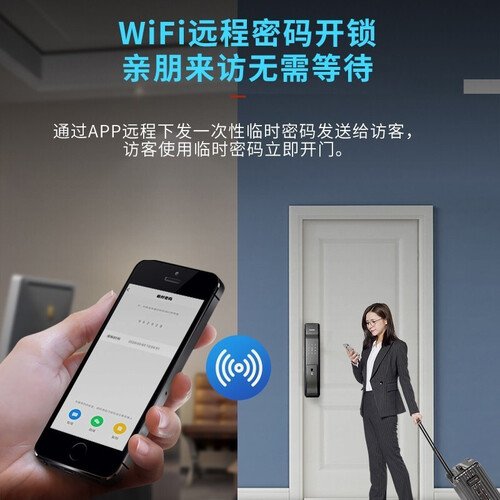 内置wifi模块,无需网关即可联网。采用自研机电一体化锁体,解锁、上锁更迅速。可设置临时密码,到访客人均可使用。