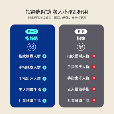 指静脉技术,伪造难度高,更安全。超广角大镜头,监控范围大,增加安全系数。可视化对讲,可用APP跟门口的人进行视频对话。