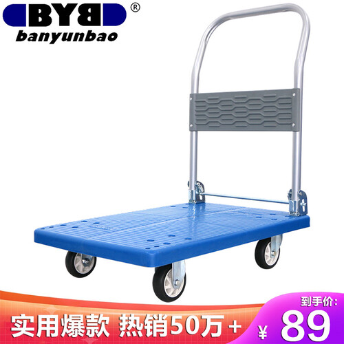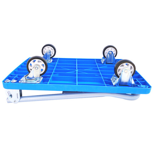 车板采用全新尼龙塑料,抗压性能好,承重力强,方便搬运重物。耐磨PVC脚轮,灵活转动,运送更轻松。可进行折叠,方便存放不占用空间。