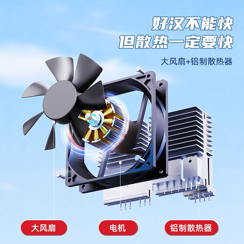 搭载智能双芯,防粘防炸管多种功能,效率更高,专业又安心。大风扇搭配铝制散热器,散热更快更有效。8个大电容,提升了电机的功率。