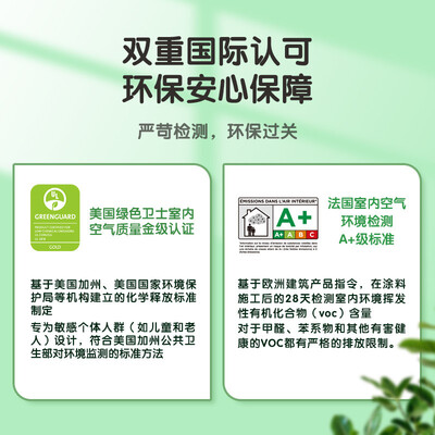 天然活性竹炭因子与高效除醛科技,有效捕捉并净化游离在空气中的甲醛、甲苯等有害物质。双倍防霉,持久保护,有效预防霉菌滋生。