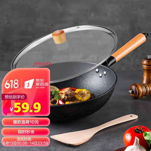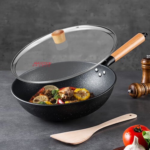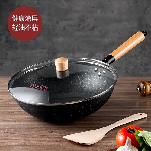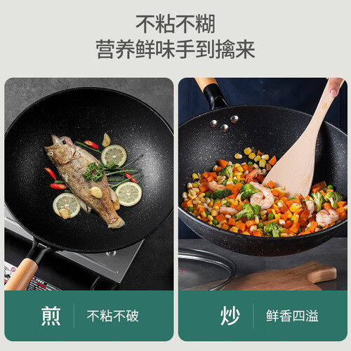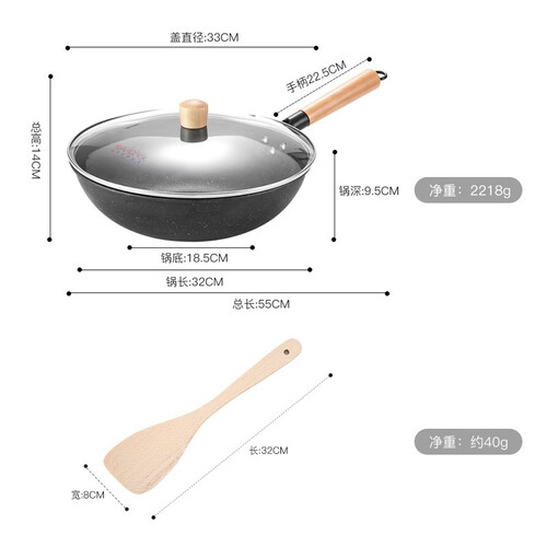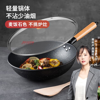 锅体重量很轻,女生老人也能轻松颠锅不费力。添加麦饭石色不粘涂层,煎炒烹饪不糊锅油烟少。同时,麦饭石色锅还很容易洁净清洗。