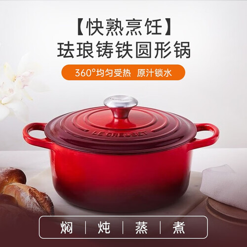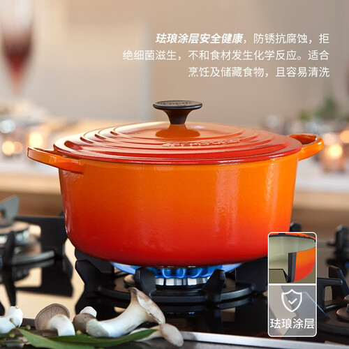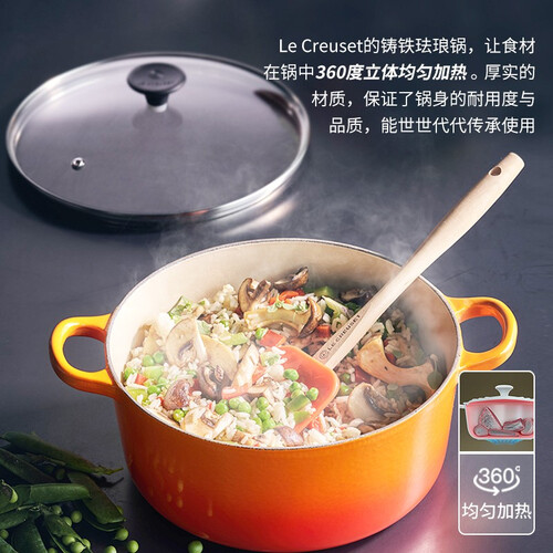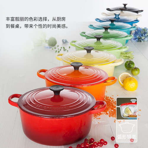 锅体将色彩明快靓丽的珐琅与健康铸铁材质结合,聚热快速均匀,能很好的保留食物的美味及营养,日常炖肉、炖菜、煲汤、煮粥皆可。