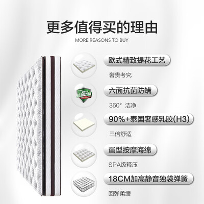 450g抗菌防螨针织面料,加倍柔软亲肤,3CM加厚泰国高纯度乳胶,高弹贴合包裹身形,蛋型按摩海绵,透气散热,舒缓释放压力。