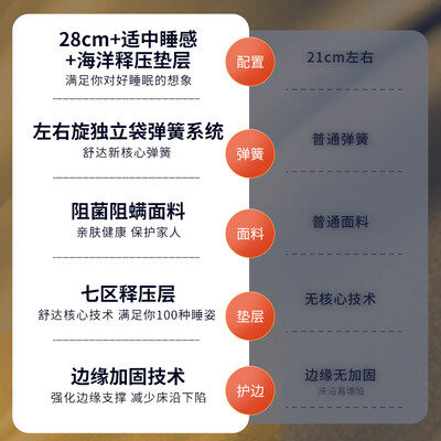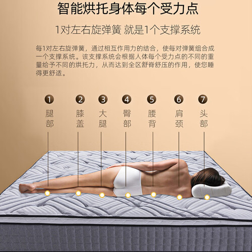 采用科学的七区设计,承托有力赶走一体的疲惫感,享受深度睡眠。独立袋弹簧设计,有效减少噪音的产生,四溢翻身不打扰。