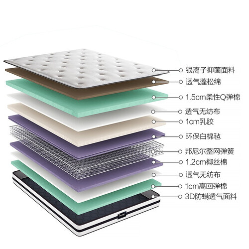 精选泰国进口天然乳胶制作,能紧密贴合人体曲线,有效保护脊椎,轻松适应各种睡姿。内置邦尼尔整网弹簧,支撑力强,经久耐用。