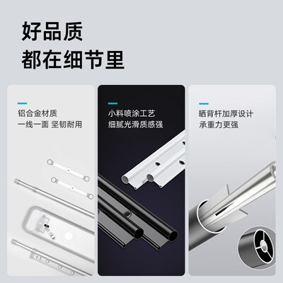 严选优质铝合金材质搭载加厚晒被杆,较强的承重力,使用更持久。错层晾晒设计,分层晾晒更均匀。一键智能升降操控,轻松晾晒超便捷。