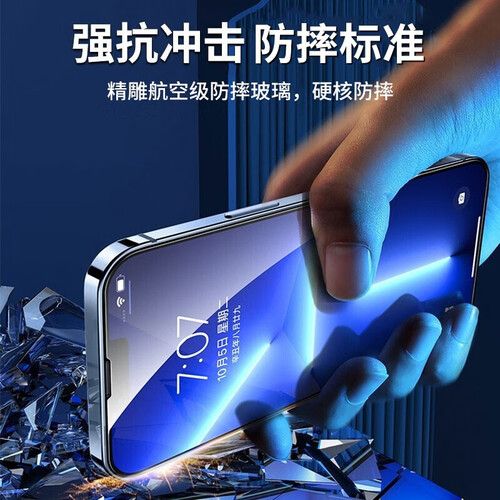 精雕航空级防摔玻璃,硬度高,无惧冲击和碰撞,坚固耐用。采用全屏覆盖设计,边角完全贴合,不进灰不卡手,避免黑边挡屏。