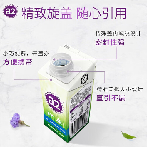 富含珍贵的A2型蛋白质,亲和人体好吸收,轻松给身体摄入优质营养。采用旋盖包装设计,方便携带保存,并能满足随时畅饮的需求。