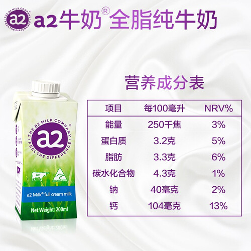 a2 营养全脂纯牛奶