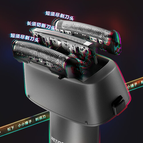 立体浮动式拱形3刀头,紧贴面部轮廓,剃须舒适更高效。30°锐角刀刃,刀片锋利,剃须更利落。干湿两用,全身防水,解锁多种使用环境。