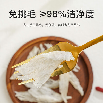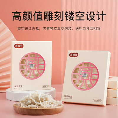 轻毛燕窝原料,燕窝酸浓度高。营养价值不输完整燕盏,自食性价比很高。98%洁净度,食用免挑毛,入口软糯爽滑,蛋清味十足。