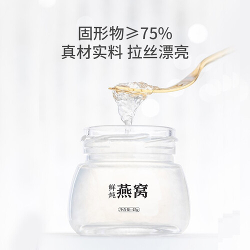 115℃锁鲜精炖,释放燕窝珍贵营养,更高的灭菌工艺,安心食用。固形物高达75%以上,浓稠肉眼可见,拉丝漂亮,入口爽滑。