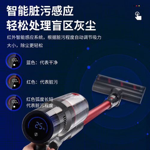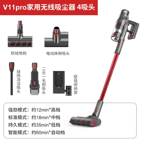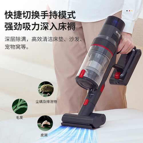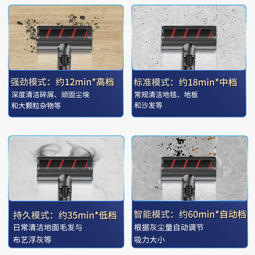 强劲吸力,除尘除螨二合一;犀利持久不减弱;60分钟运行时间;主吸头+3款吸头配件,覆盖日常清洁所需,全息触控显示屏,功能一目了然。