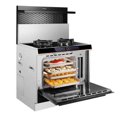 烟灶联动设计,不惧油烟逃逸。大容量的蒸烤箱,能提供烧烤、蒸菜、保温等功能。可拆卸油网和不锈钢的内胆,清洁更容易。
