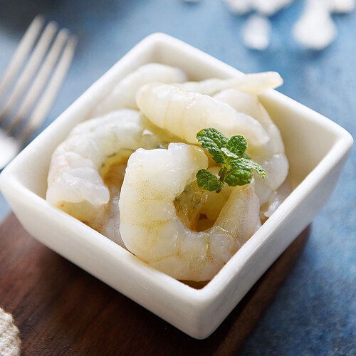 虾肉通体莹润洁白如玉,入口鲜香弹嫩,烹饪不缩水,看得见的好品质。采用单冻技术,粒粒分明不粘连,整虾去壳开背去虾线,烹饪方便。