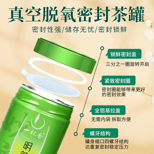 明前采摘的鲜嫩茶芽,经手工炒制工艺制作,使得茶香悠远,鲜爽回甘,喝一口让人回味无穷。罐装设计,密封性强,不易受潮。