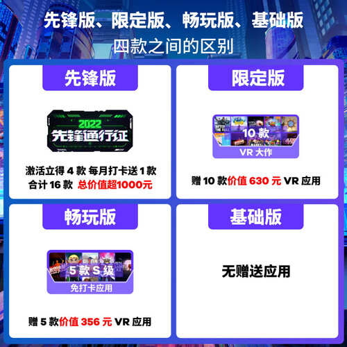 4K级画质,体验更逼真;单人通关,一样精彩,多人对战,其乐无穷,配自研运动中心,酣畅体验同时实施监测体能消耗。
