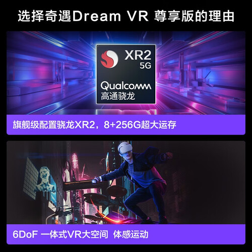 配置旗舰级骁龙XR2处理器,性能稳定强劲,游戏运行流畅快速,不卡顿低延迟。一体式VR大空间,尽享运动体感游戏带来的畅快体验。