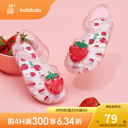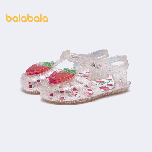 采用柔软pvc舒适不磨脚,编织镂空设计,透气又防踢。清透的果冻色调,萌趣可爱,增加精致亮片,细节点缀,可爱加分。