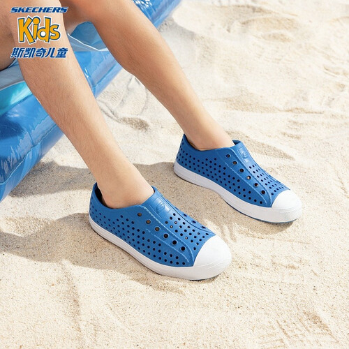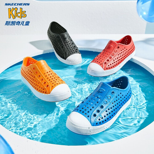 透气孔洞,疏水快干,快速排汗,穿着不闷脚,清爽透气。EVA材质的鞋底,脚感轻盈舒适,防滑耐磨。一脚蹬设计,穿脱更自在。