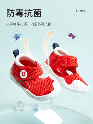 内里采用网布面料制作,亲肤透气,穿着舒适。搭配魔术贴设计,可自由调节,方便穿脱。鞋口周围填充优质海绵,走路时也不会磨伤脚踝。