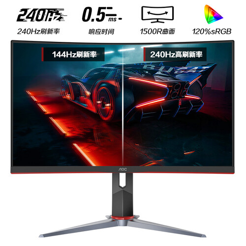 27英寸VA屏,创新曲率1500R,画面纵深带来超赞的环绕既视感,240Hz刷新率,减少快速移动、旋转带来的眩晕感,稳定流畅度。