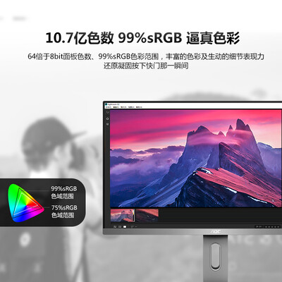 4K专业级影响创作显示器,10.7亿色数,适配4K视频剪辑制作,精准把控细微之处;人体工学设计,可调节观看视角,让你舒适办公。