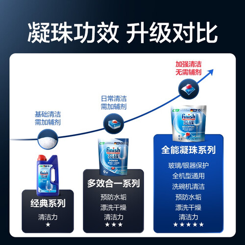 专注洗碗机洗涤剂65年,打造全面升级的极净洗碗凝珠。强效洁净,软化水质,预防水垢,还能加速干燥并光亮碗碟,提供深度清洁。