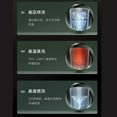 颜值高,智能免手洗,使用后选择自动清洗即可,解放你的双手;一键启动,4步清洗,多方位有效去除污渍,抑菌无异味,使用更健康。