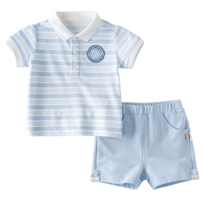 细腻的全棉汗布材质,触感亲肤细腻,且可快速吸湿。工艺车线,做工精致。清新的蓝色搭配白色,视觉上显得清新,给人凉爽的感觉。