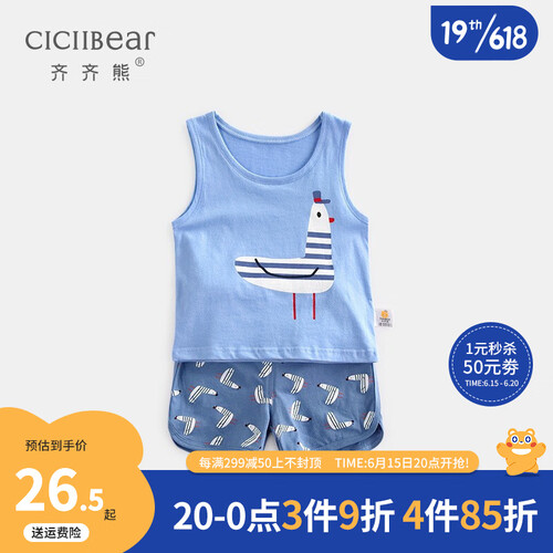 齐齐熊 男童背心套装