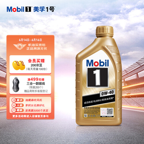 美孚1号全合成机油,粘稠度高,能为发动机提供很好的抗磨保护,承受各种温度并且能提高发动机的清洁性,让发动机处于噪音低的状态。