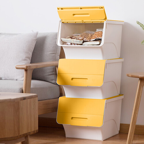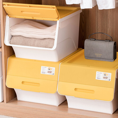 前开设计,便于拿取箱内的各种物品,取物从容且快捷,给您的生活提供便利。顶部采用凹槽,叠放箱体不摇晃,物品不滑落,使用无忧。