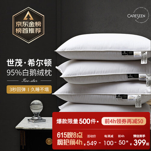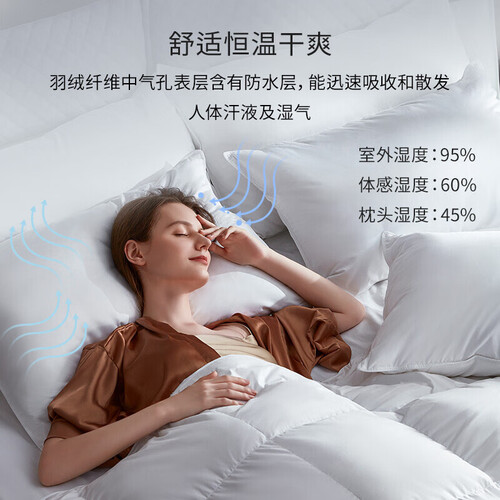 95%白鹅绒,透气会呼吸的羽绒枕,羽绒吸湿性更高,能吸收汗水并快速排湿。无缝贴合头部和颈部生理曲线侧睡不落空,仰睡更贴合。