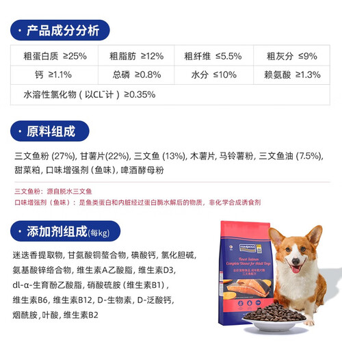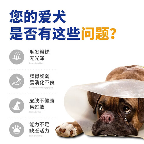 甄选优质三文鱼食材,鲜香味美,长期食用可以降火、去泪痕。采用营养素组合配方,丰富脂肪酸能够帮助狗狗靓丽毛发,恢复蓬松质感。