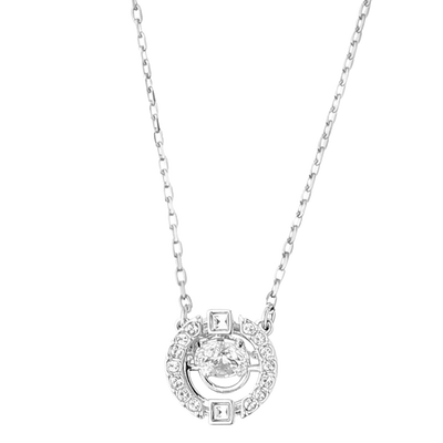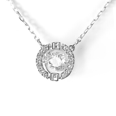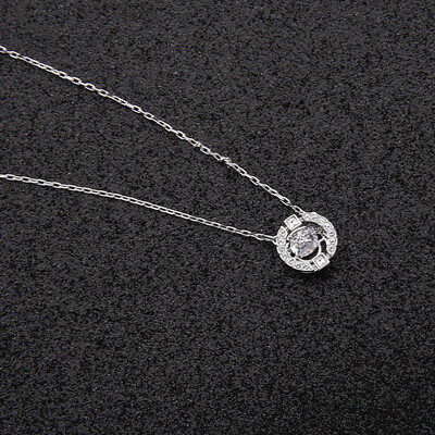 项链通体柔和明亮,做工精湛,触感平整光滑,佩戴亲肤舒适。圆形吊坠,寓意美好,非常适合佳节送女友。优选仿水晶石材质制作,光彩夺目。