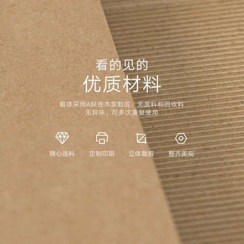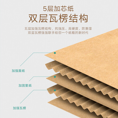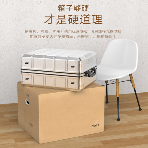 立体剪裁箱体设计,整齐美观品质卓越。5层加强瓦楞结构,可收纳大件多量物品,搬家运输事半功倍!全新聚丙烯把手,手提省力不费劲。