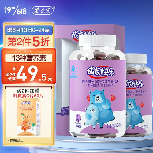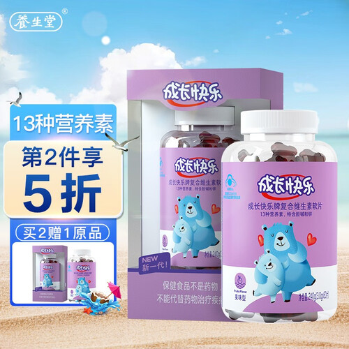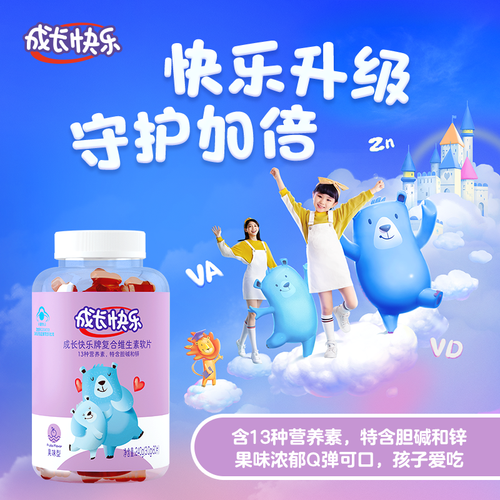 养生堂成长快乐多维软片,一片含13种成长元素,满足日常营养所需。包装升级,守护更贴心,母子熊形象全新变身,爱心闪闪更温暖。