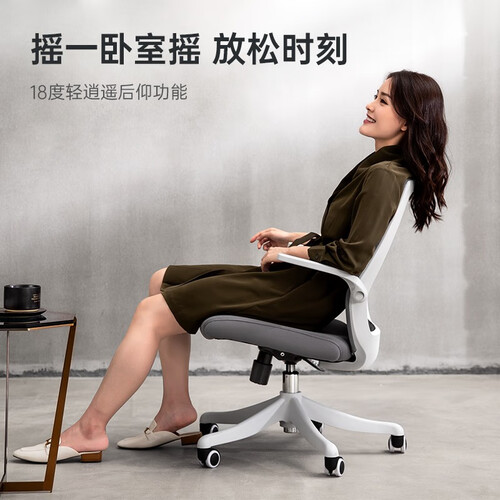 扶手可以90度翻转,起身的时候可以轻松推入桌底,减少占用空间,办公环境更整洁。采用柔韧弹力网布,不起褶皱,透气性好。