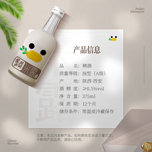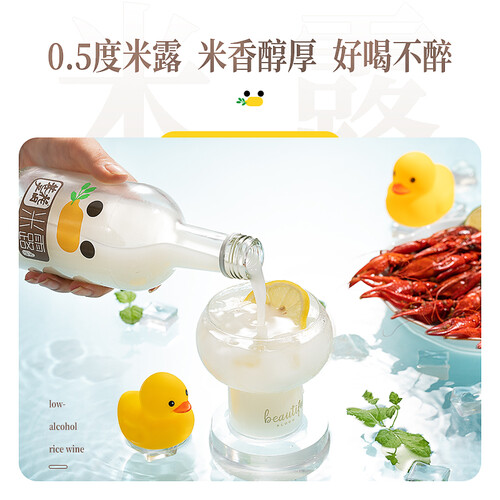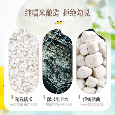 挑选颗粒饱满且色泽白净的糯米,辅以甘冽水源发酵,酒香醇厚沁人心脾。圆润的口感,结合0.5的度数,香甜味道在齿间蔓延,好喝不易醉。