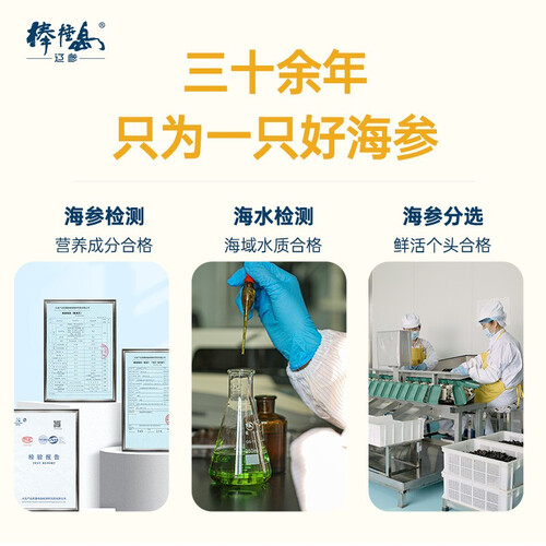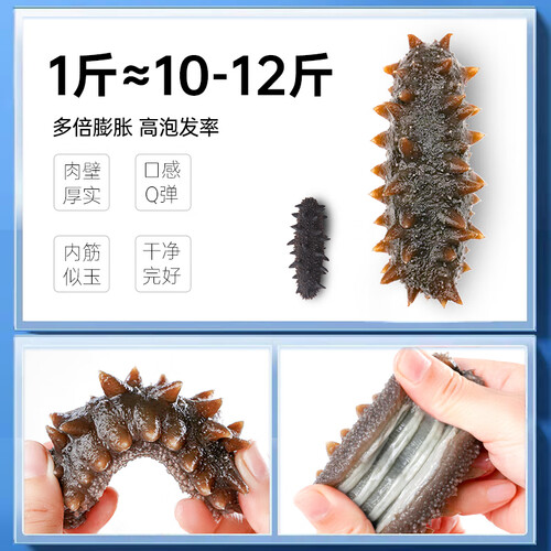 选用北纬39°黄金海域原材料,经过多层筛选,每根海参都是饱满厚实的品质。色泽均匀鲜亮,参刺完整坚挺,腹足密集粗壮,口感更劲道嫩滑。