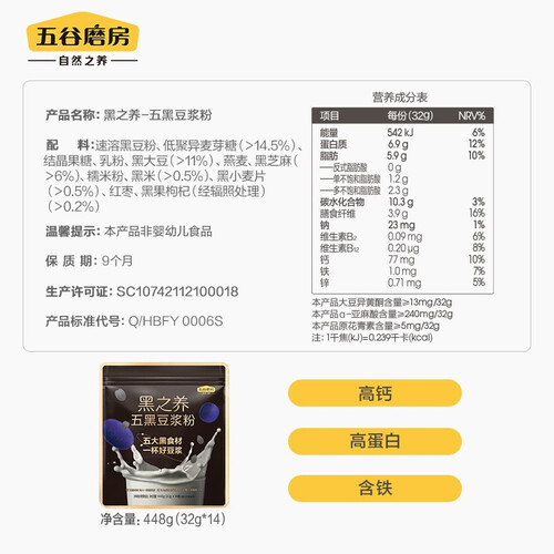 蕴含5大经典黑色食材,营养价值高,高钙高蛋白,美味又健康,为身体补充营养。即冲即饮,口感香醇细滑,非常适合早餐时食用。