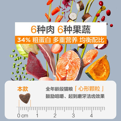精选6种优质肉源,搭配上6种天然果蔬,多维营养,有助于猫咪健康成长。特别添加牛磺酸与胡萝卜等,富含维生素A,保护猫咪双眸。