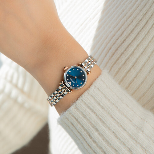 圆形蓝色表盘,时尚吸睛,佩戴简约大气。具有防水功能,减少日常摘戴次数。石英机芯,走时准确稳定,方便每日读时。不锈钢表壳,防刮耐磨。
