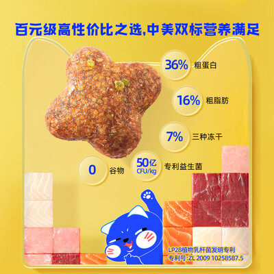 高达80%的含肉量,带来口口肉裹肉的满足感,助力养成网红美猫。专利益生菌和益生元成分,能够有效调理爱宠肠道,解决软便等问题。